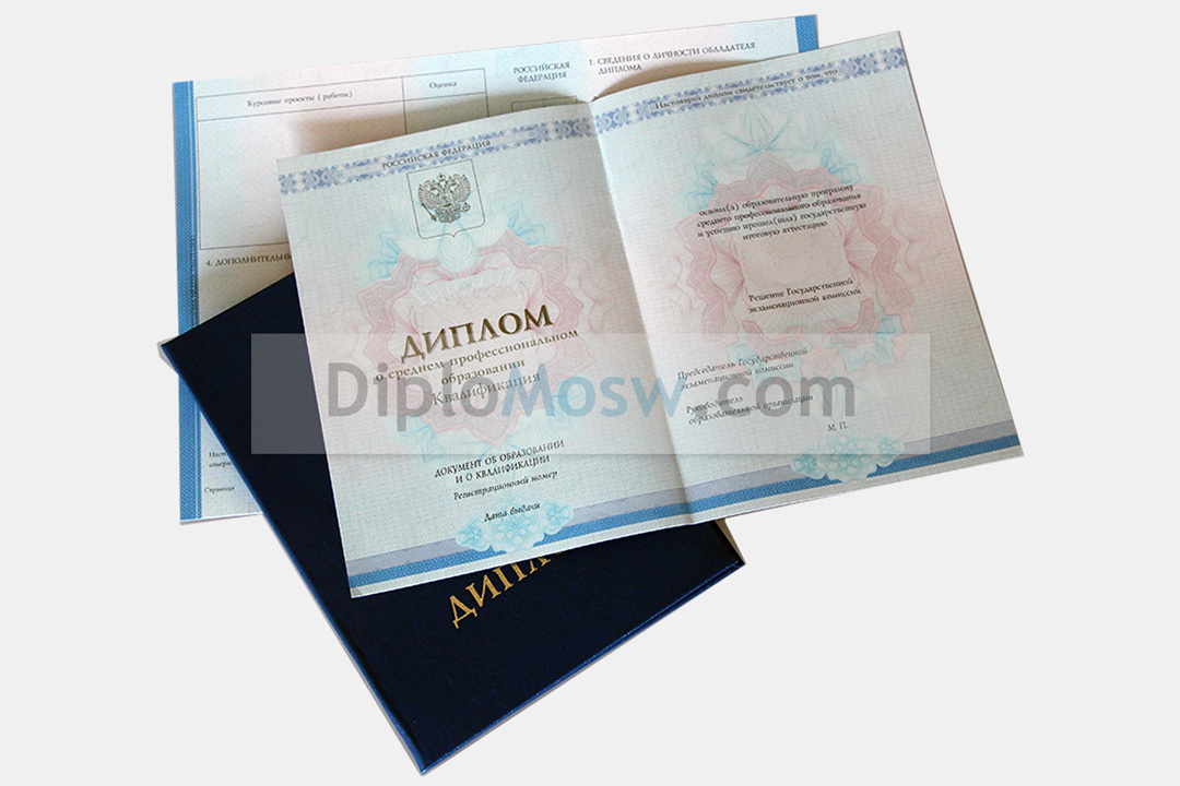 Диплом: Полный комплект с обложкой и приложением, заполненный, как в ССУЗе